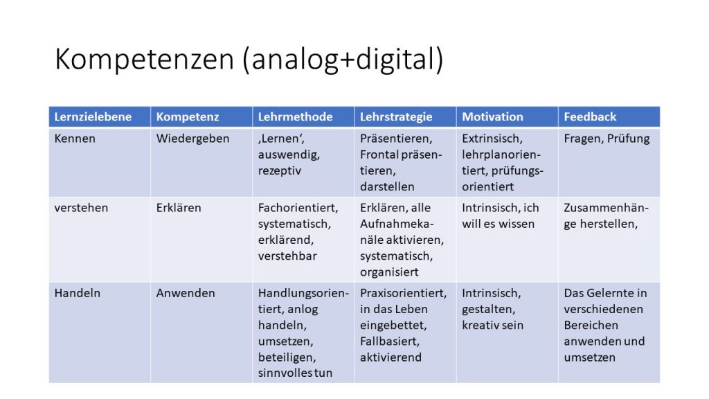 Abseits von der tagespolitischen Diskussion zu Homeschooling geht es doch bei Lernprozesses um Wissen und Kompetenzen, die analog+digital erworben werden.