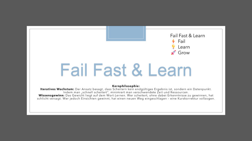 “To fail early to learn quickly. Ganz früh scheitern, um ganz schnell davon zu lernen.“